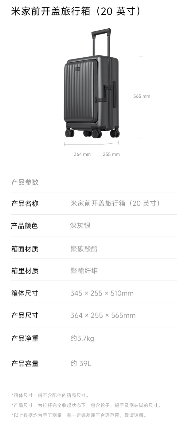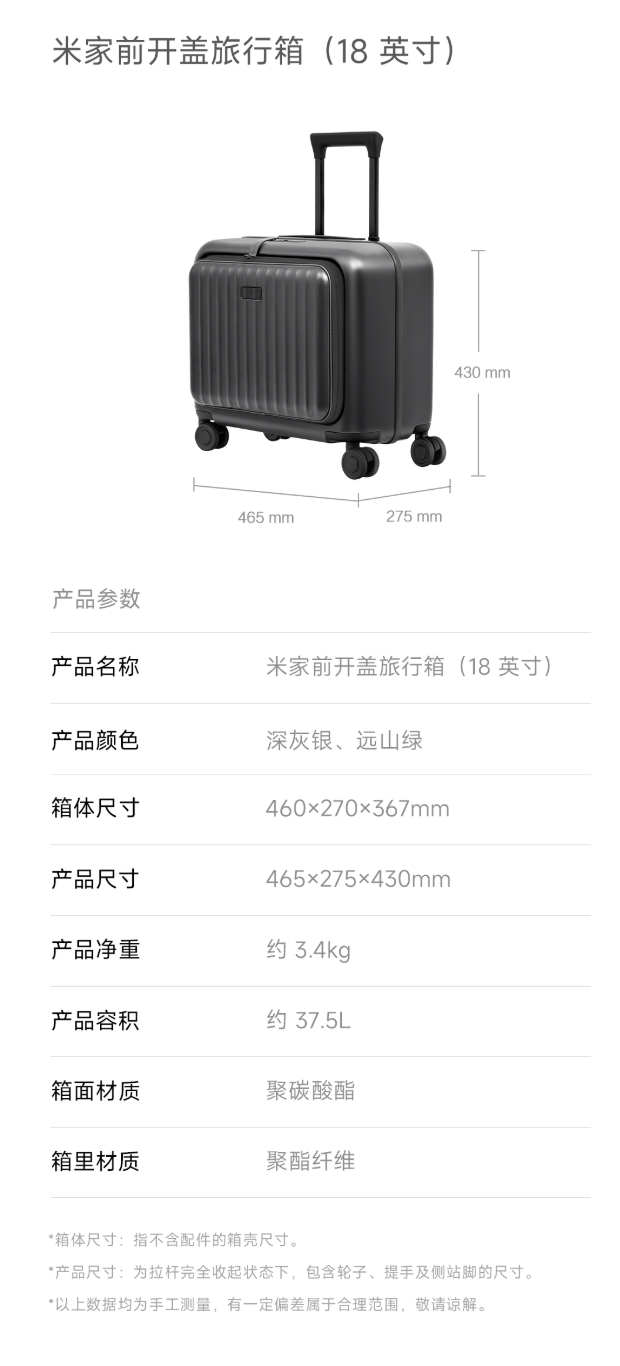 IT之家 3 月 12 日音尘开云体育,小米现已在有品上架米家前开盖旅行箱,其提供 18 / 20 英寸两种规格可选,订价离别为 399/499 元。